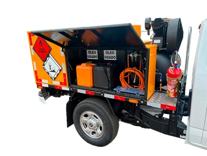 COMPARTIMENTO DE OLEO: Compartimento para duas bombonas de 20 litros para óleo novo e duas bombonas de 20 litros para óleo usado.